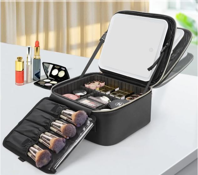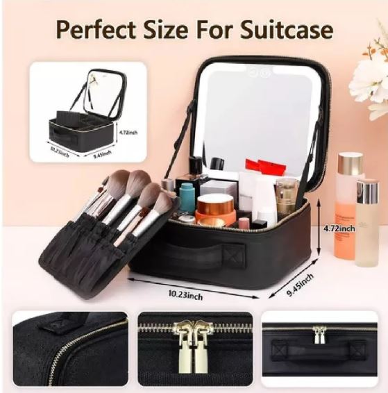 La Cosmetiquera Brillante ofrece una experiencia única de organización y belleza. Su espejo con luz LED ajustable permite maquillarte con claridad en cualquier ambiente, mientras sus compartimentos internos se adaptan a todo tipo de cosméticos. Con diseño moderno, cierre de doble cremallera y acabado de lujo, esta cosmetiquera es el aliado perfecto para quienes buscan mantener su maquillaje siempre impecable dentro o fuera de casa. Tamaño del paquete: 27 cm de largo x 25 cm de alto x 10 cm de ancho