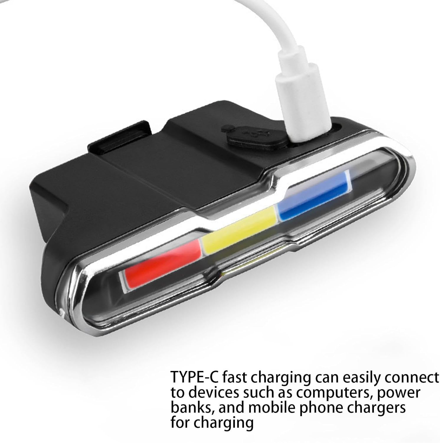 Se cargan con luz natural durante el día, mayor duración de la batería, no consume energíaSoporta función de iluminación de doble carga-Mecha XPE de alto brillo mejorada, con un largo rango de irradiación, para que puedas tener una visión brillante y conducir de forma segura.Bocina de advertencia real de 130 decibelios de alto tono que alerta eficazmente a los transeúntes. 1 luz Ilumina aldenate y la de atras es de facil agarre iluminacion profunda