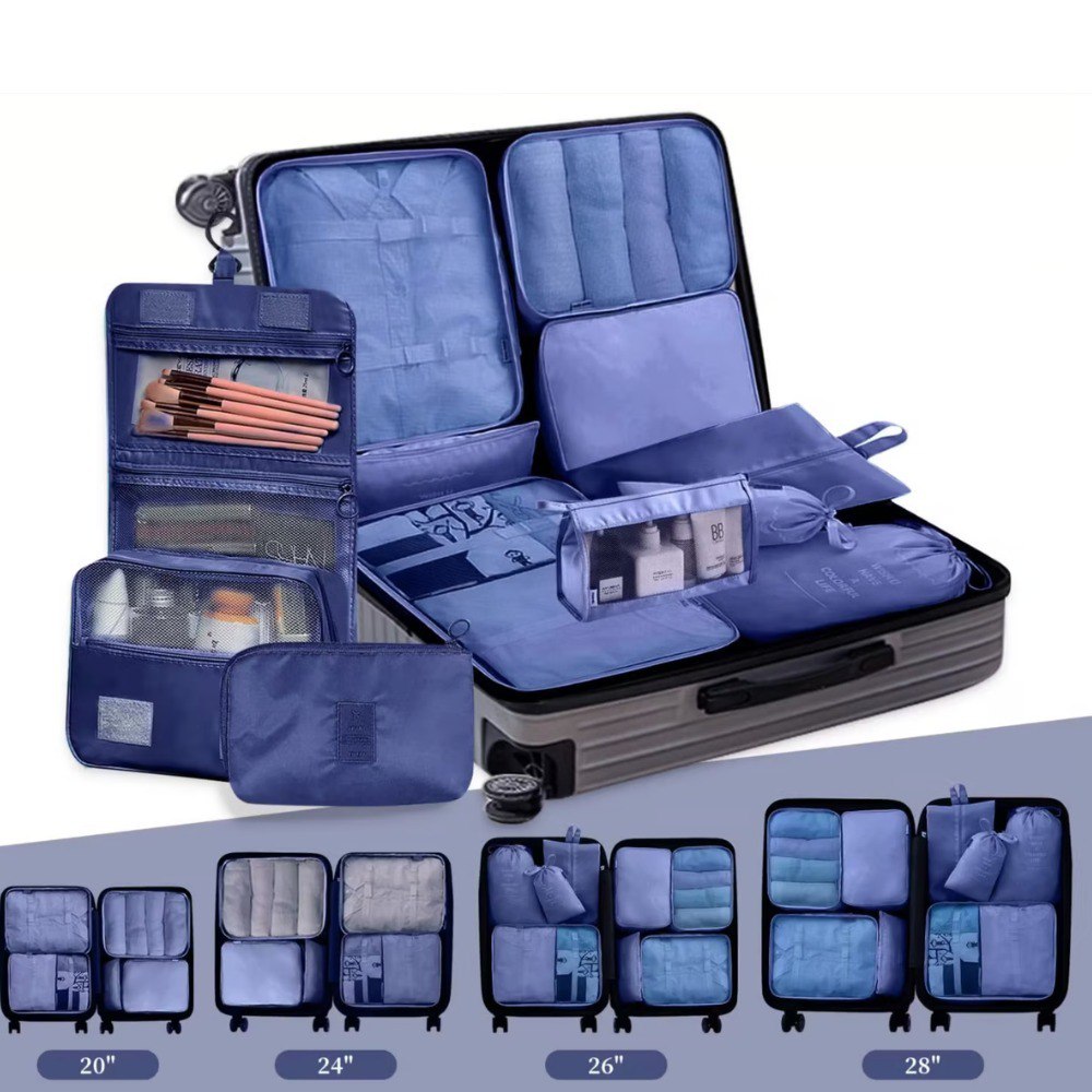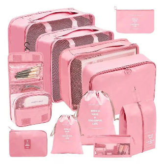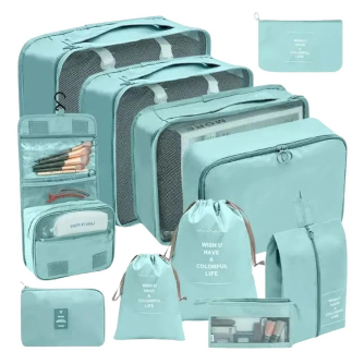 Organizadores De Viaje Multifuncional Kit X 11 Piezas Organizadores De Viaje Multifuncional Kit X 11 Piezas Con el Set Organizador de Ropa para Maleta X11 nunca más tu maleta se vera desorganizada, y podrás empacar lo que necesites y lo mejor sabrás donde. Colores Disponibles: Rosado/ Gris/ Verde NOTA: selecciona color de preferencia, en caso de no ser seleccionado, se enviará color sujeto a disponibilidad Versátil bolsa de viaje: Las maletas son la forma perfecta de organizar las vacaciones familiares, los viajes de negocios, las vacaciones en familia, las acampadas y otras actividades al aire libre o para el almacenamiento diario. Tejidos de alta calidad: organizadores para maletas con tejidos de alta calidad, respetuosos con el medio ambiente, duraderos y fáciles de limpiar. Tamaños de bolsas: - Tamaño de la bolsa de red grande: 40 X 30 X 11 cm - Tamaño de la bolsa de red medio: 32 X 25X 11 cm - Tamaño de la bolsa de red pequeño: 30 X 22.5 x 11 cm - Tamaño de la bolsa para ropa interior: 31 X 20.5 X 11 cm - Bolsa de tamaño Pequeño Plano: 14 x 21.5 cm - Bolsa de Zapatos con cierre: 35 X 23 X 10 cm - Bolsa de tamaño Grande con cordón: 34 x 25.5 cm - Bolsa de tamaño Pequeño con cordón: 24 x 14 cm - cartera pequeña con cierre: 26.5 x 15.5 cm - Bolsa desplegable para cosméticos: 40 X 23.5 X 16 X 9.5 cm - Cartera pequeña Para accesorios de baño: 26.5 X 15 X 10 cm Tipo de cierre: cremallera Peso: 0,2 kg